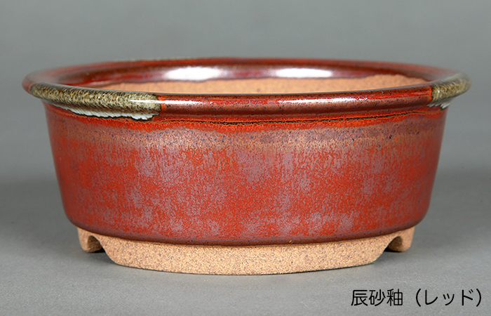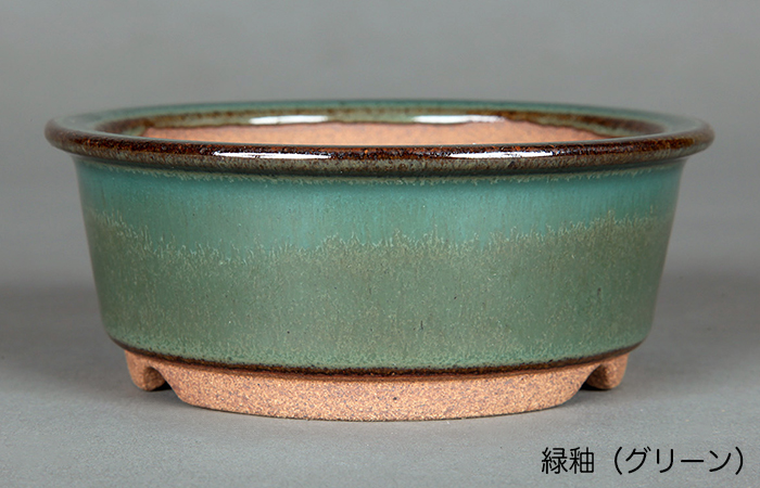 中深の縁付のデザインが丸鉢としては珍しく、個性的な仕上がりを見せています。小品・ミニ盆栽の根張りのある樹や株立、山野草に最適。使い勝手の良いサイズも魅力です。白釉・海鼠釉・緑釉・辰砂釉、各1点ずつの4点セットです。