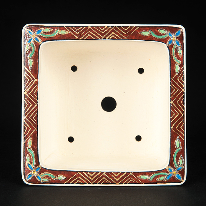 現在は京薩摩の作風は残しつつ、樹を植えることを意識した余白を残した絵付けに加えて、小品盆栽を引き立てる鉢型など独自のスタイルを確立するに至る。