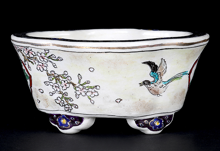 現在は京薩摩の作風は残しつつ、樹を植えることを意識した余白を残した絵付けに加えて、小品盆栽を引き立てる鉢型など独自のスタイルを確立するに至る。
