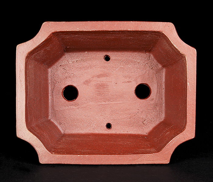 格調高い大隅切額面長方型。深さもあるので迫力のある樹を受け止めます。大振りな小品盆栽から貴風サイズまでをカバーできる作品です。