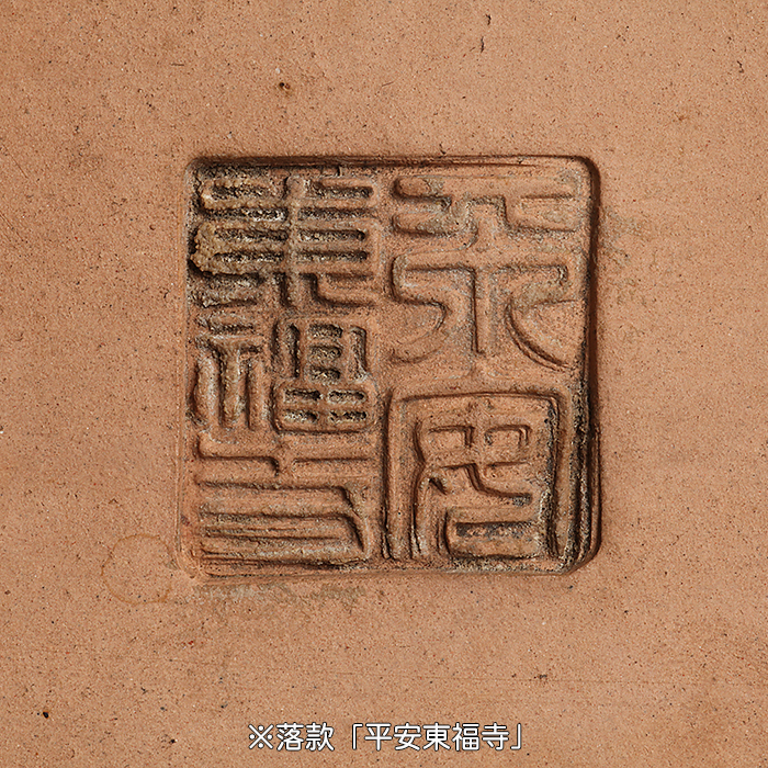 初代の落款ですが、胎土や作風から二代目東福寺の作だと判断しました。厚塗りされた釉薬の色調が美しく、色合いの微妙な変化が景色を成す素晴らしい仕上がりを見せています。すっきり洗練された型で使い勝手のよい寸法が示すように、しっかり使い込まれて釉薬の落ち着き見せています。これが初代の作なら百万円以上の値が付いていても不思議ではありません。まさに二代東福寺の最高傑作と言えるでしょう。軽微なガタがある程度で保存状態は良好。落款:平安東福寺