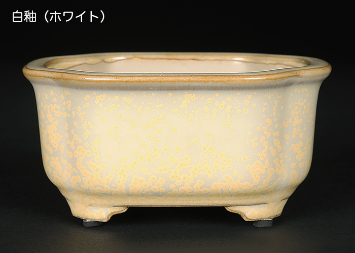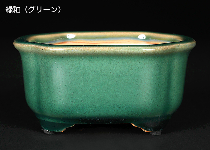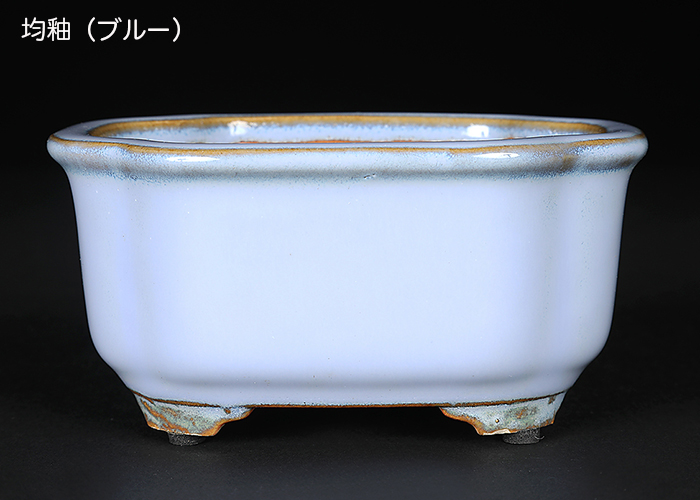 本場である中国広東省・広州の窯元で焼成された石峰雨竹の広東鉢。古渡鉢の再現にこだわり、長らく放置されていた登り窯を再興、当時の胎土と釉薬、製法までをも再現しています。登り窯での焼成が生み出す美しい発色と窯変は量産品でありながら1点ものの味わいを見せています。型は古渡鉢を模範とし、現代にも使えるオリジナルの型を用いています。石峰雨竹シリーズの中でもミニ盆栽〜小品盆栽に使える手頃なサイズのシリーズ。この美しい釉薬に相応しいデザイン性に富んだ型が特徴です。