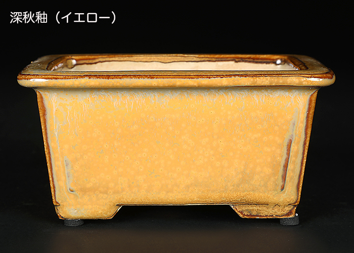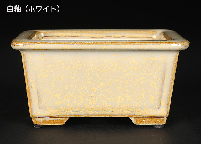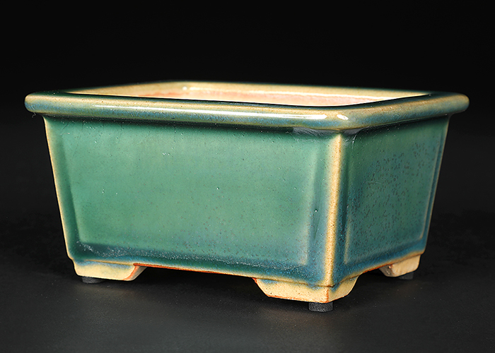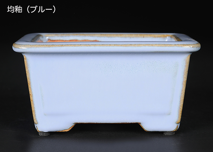 本場である中国広東省・広州の窯元で焼成された石峰雨竹の広東鉢。古渡鉢の再現にこだわり、長らく放置されていた登り窯を再興、当時の胎土と釉薬、製法までをも再現しています。登り窯での焼成が生み出す美しい発色と窯変は量産品でありながら1点ものの味わいを見せています。型は古渡鉢を模範とし、現代にも使えるオリジナルの型を用いています。石峰雨竹シリーズの中でもミニ盆栽〜小品盆栽に使える手頃なサイズのシリーズ。この美しい釉薬に相応しいデザイン性に富んだ型が特徴です。この美しい釉薬に相応しいデザイン性に富んだ型が特徴です。