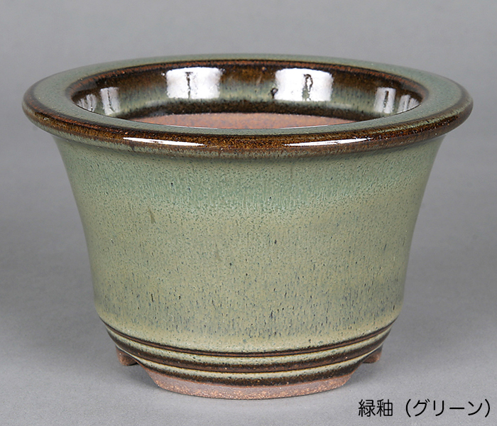 深さのある外縁丸鉢。オーソドックスな型は使い勝手抜群です。ビニールポットから簡単に植え替えられる便利な丸鉢です。釉薬は辰砂釉・白釉・緑釉・海鼠釉の4色がございます。