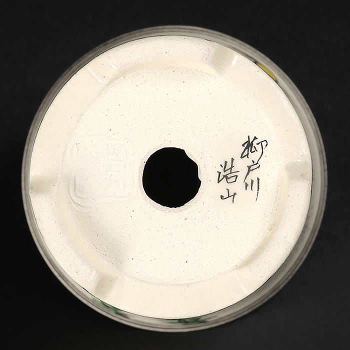 京薩摩の伝統に新風を吹き込み、国内外の盆栽愛好家から高い支持を集める陶工・柳戸川浩山の新作鉢。盆樹との調和を意識した落ち着いた色調で、さらに近年は薩摩焼伝統の図案から、名所旧跡や神社仏閣などの風景を取り入れるなど、新たな作風に挑戦。柳戸川浩山の新境地、この機会にお手元でご堪能下さい。落款:柳戸川浩山・他。