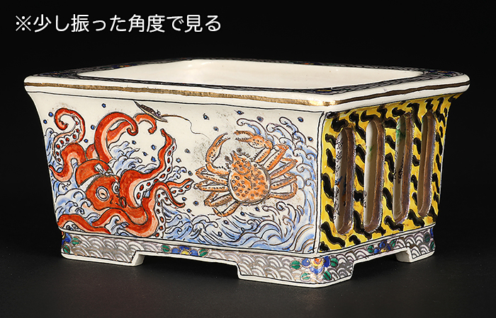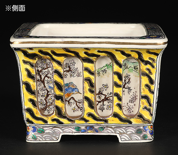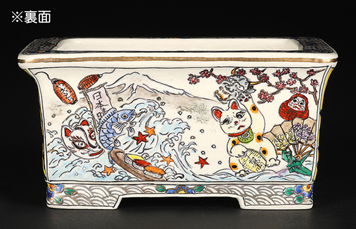 現在は京薩摩の作風は残しつつ、樹を植えることを意識した余白を残した絵付けに加えて、小品盆栽を引き立てる鉢型など独自のスタイルを確立するに至る。