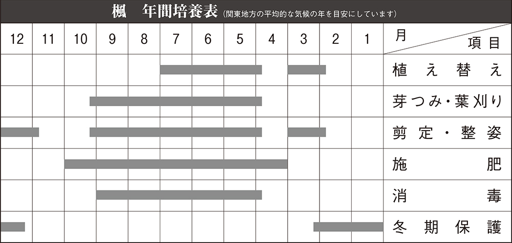 夏場の水切れは葉灼けの原因となりますので美しい紅葉を楽しみたい場合は注意が必要です。