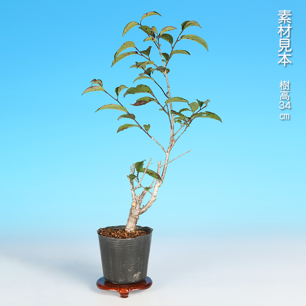 風鈴梅もどきの交配用の雄木素材です。風鈴梅もどきは雌雄異株の樹種のため、実姿を楽しむには雄木との交配が必要不可欠。雄木を雌木の近くに置いて自然交配、あるいは人口交配で受粉させます。もちろん、盆栽として一から樹づくり、花姿も楽しむこともできます。