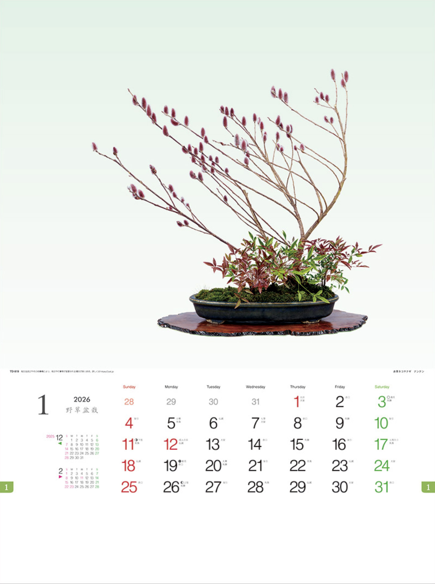 2026年令和8年度版 盆栽カレンダー『野草盆栽』