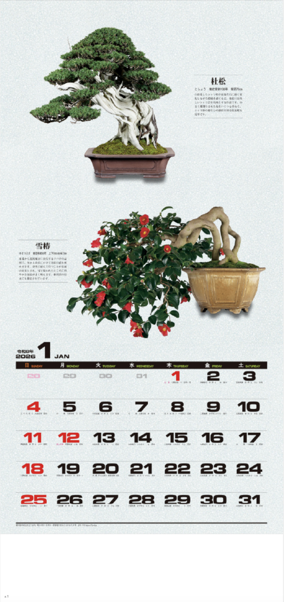 2026年令和8年度版 盆栽カレンダー『自然愛』長