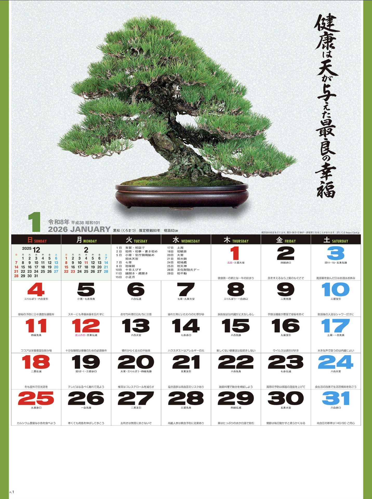 2026年令和8年度版 盆栽カレンダー『自然愛』短