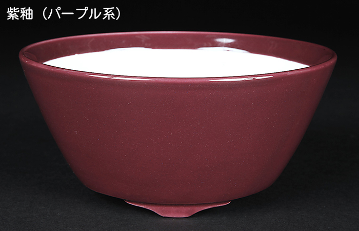 色鮮やかな発色と高品質な仕上がりが魅力の静和富造。某商社が輸出用に日本国内で作らせたものですが訳あって納品に至らず、小社がそれを一括購入。それにより高品質な日本鉢ながらリーズナブルな価格の静和富造ブランドが誕生しました。原産地は定かではありませんが、胎土を見る限り瀬戸か清水(京焼)と思われ、釉薬の仕上がり、特に紫釉や珊瑚釉の特徴的な色合いから、京焼ではないかと予想されます。実際に盆栽業界では京焼として流通しています。 高温でしっかり焼成された磁器のボディは適度な薄さで仕上げてあり、使い勝手の良さと耐久性を見事に両立しています。その品質の高さはプロからも高い評価を得ています。釉薬・型・大きさとバリエーションの豊富さも大きな魅力。高品質な日本鉢ながらリーズナブル、色鮮やかな静和富造であなたの樹に彩りを与えて下さい。