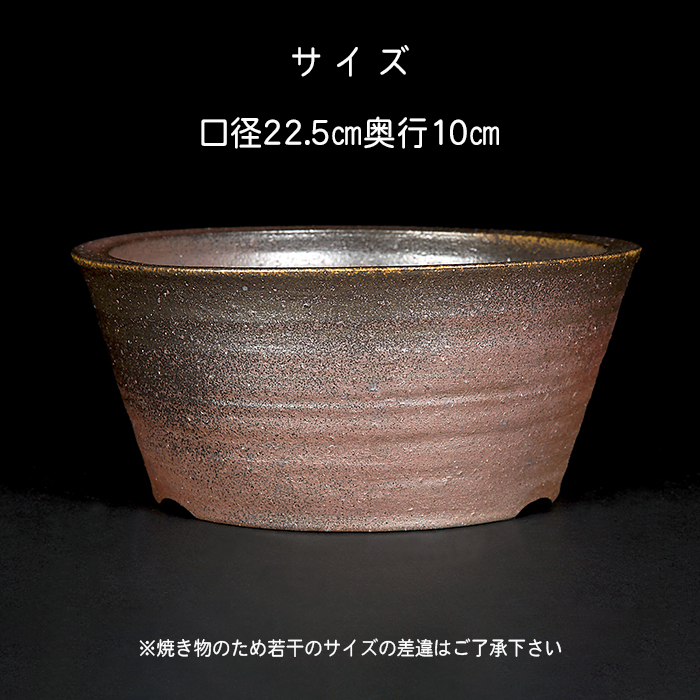 すっきり洗練された切立型の南蛮鉢。ガス窯の還元により土色に変化を見せる味わい豊かな仕上がりが魅力です。深さがあるので懸崖、半懸崖樹にも使えます。用途の広い一枚です。