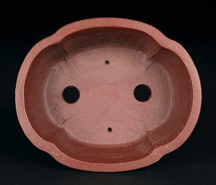 すっきり洗練された型の木瓜型で雲足の意匠が良く映える作品。本格的な小品盆栽に最適な寸法で深さもあるので迫力ある樹も受け止めます。