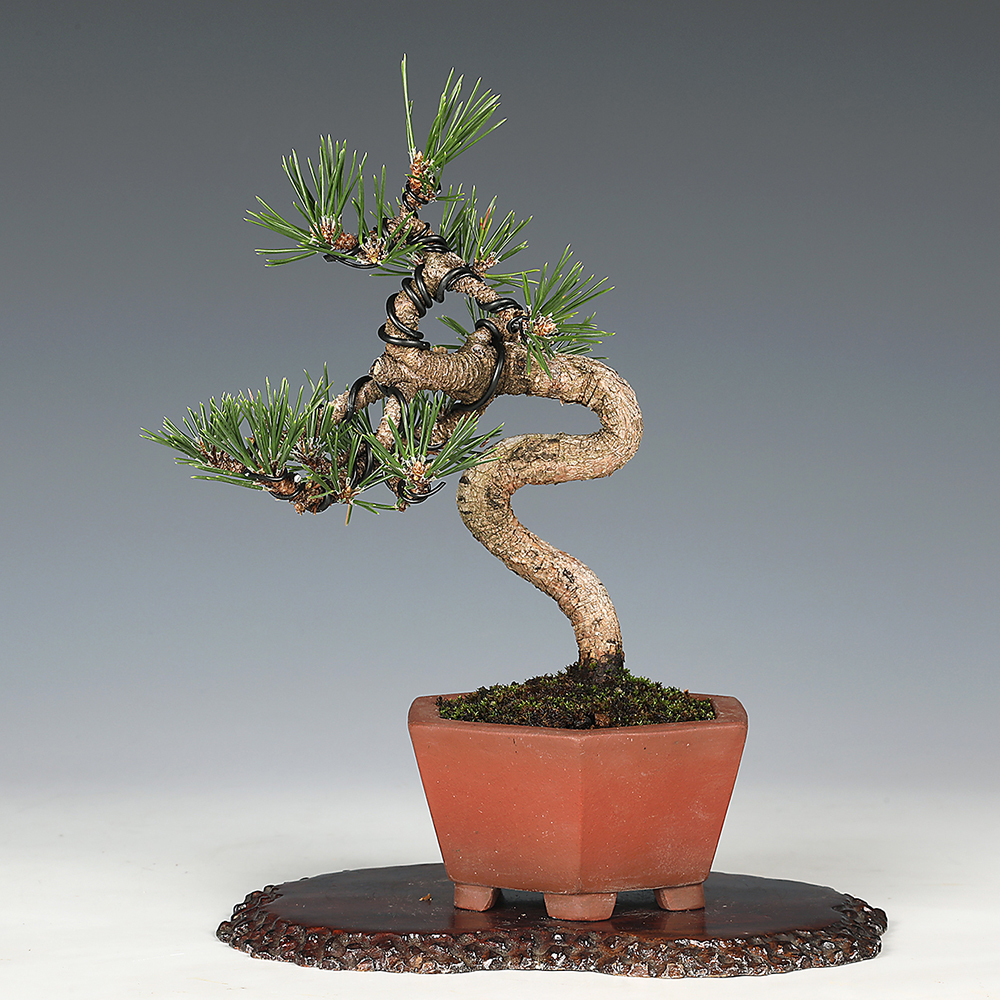 盆栽の代表樹種。時代とともに刻まれるはぜた幹肌の味わいは、深緑の鋭い葉と相まって重厚な迫力と圧倒的な存在感で目を飽きさせません。樹性強健で育てやすいため初心者にも安心です。様々な樹形表現が楽しめるのも大きな魅力です。