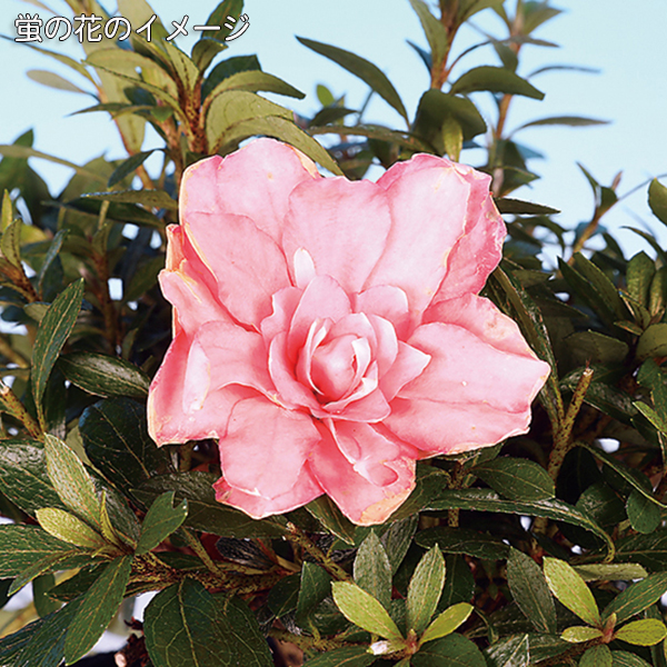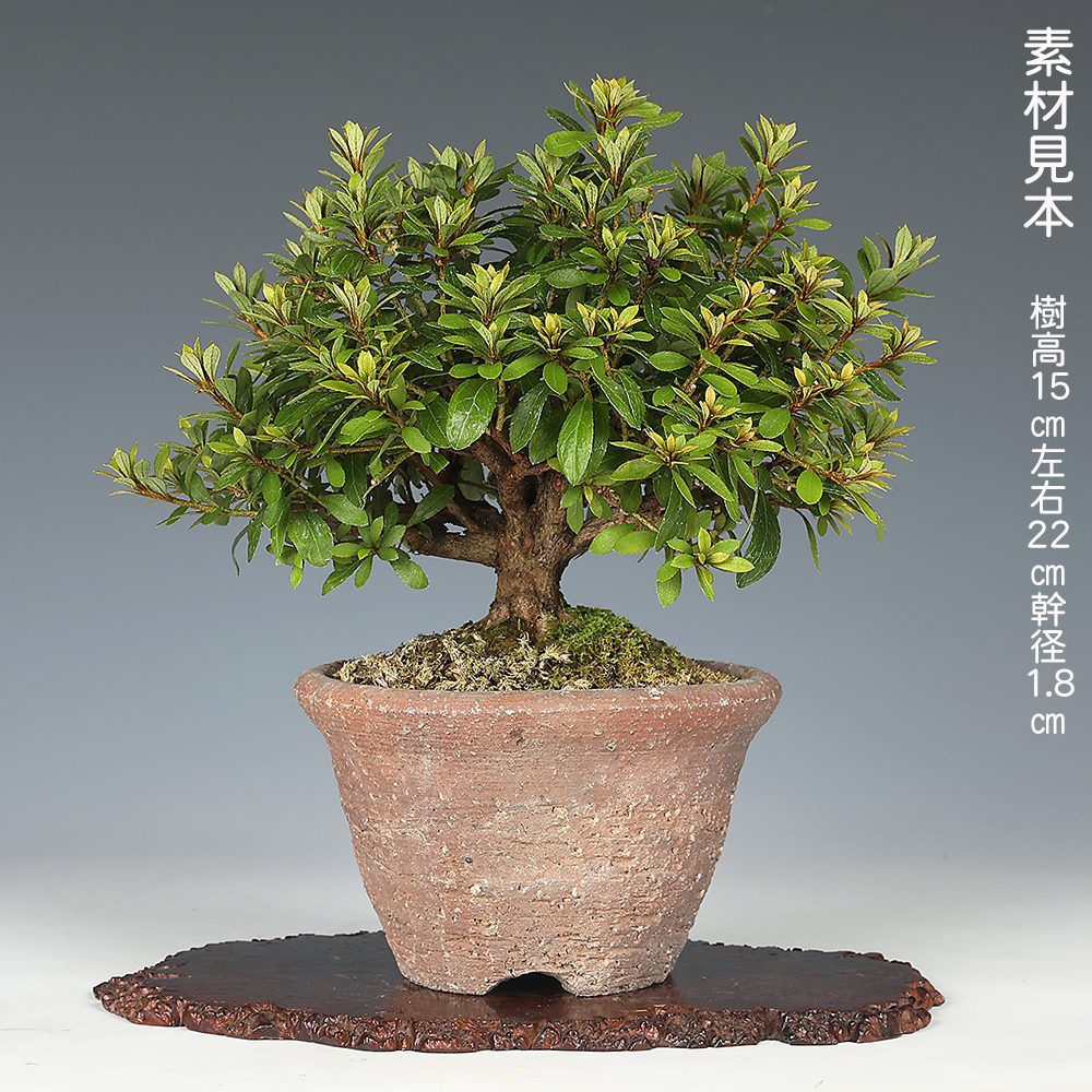 樹高15㎝とコンパクト、かつ枝数多く仕立てられた逸品素材です。枝数多く、翌年の花も楽しめそう。濃トキ色の紅覆輪花を咲かせる〔茜〕の八重咲種です。