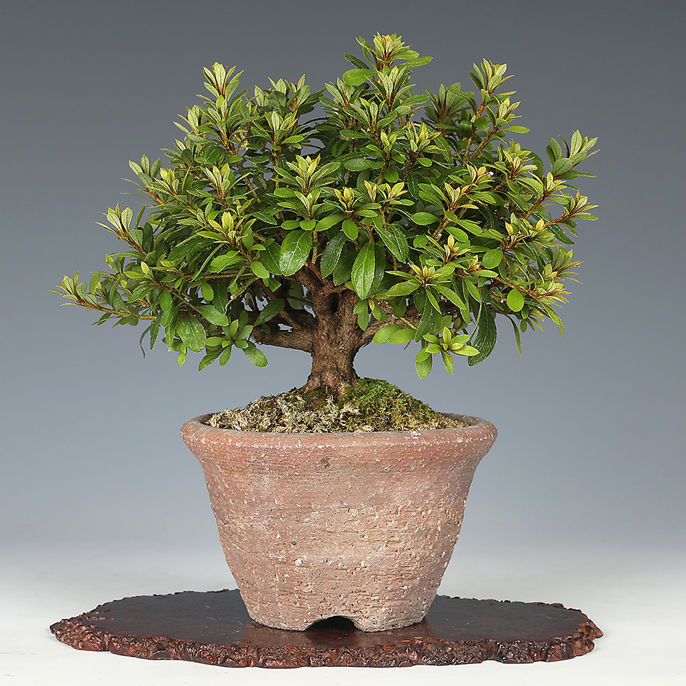 花木として、盆樹として絶大なる人気を誇り、広く愛好される皐月。品種は1000を越えると言われており、花芸・葉芸の多様さは他の類をみません。また模様木・根上り・寄せ植えといった樹形表現も多岐に及び、花期のみならず1年を通じて鑑賞を楽しめる人気樹種です。