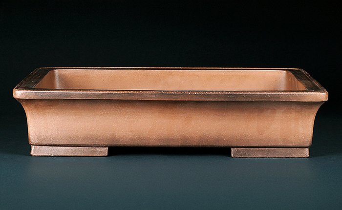 中国中渡の実用名鉢を現代に蘇らせた一品です。今の盆栽に対応するよう奥行のサイズを増やしています。シンプルながら柔らかなデザインは松柏盆栽を引き立ててくれるでしょう。