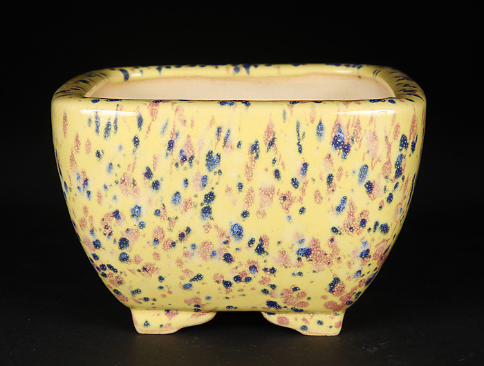 燿山窯英明黄斑紋結晶釉正方鉢
