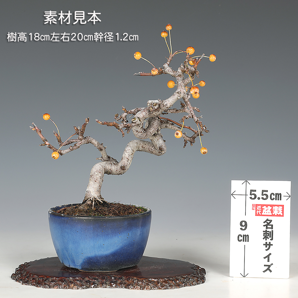 盆栽界で言う深山海棠は、赤実の実海棠や自生ズミ、ときわけズミの中でも希な黄実を重視する。それ以外にも花が華麗な垂糸海棠や花が上向きに咲く受咲海棠などがあり、それぞれに鑑賞価値は高い。実姿はもちろん、花姿、寒樹の姿と四季と通して楽しめる樹種です。