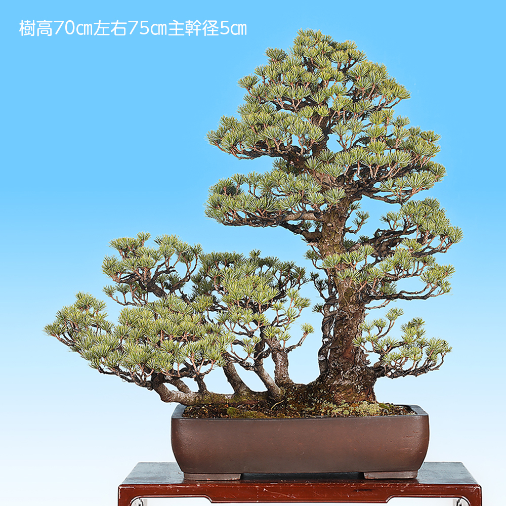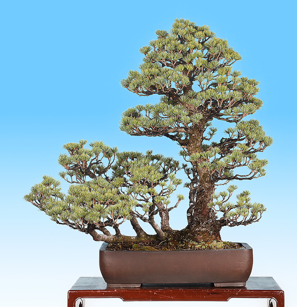 誰もが知っている「松」の代表格。丈夫な性質と優美でおだやかな姿ながら、盆栽樹種の中でも一、二を争う人気樹種です。五葉松の魅力はなんと言ってもその美しい常緑の葉にあります。短小で密に生じる葉はあらゆる樹形に調和し、様々な風趣を醸し出します。存在感たっぷりの重厚な雰囲気、枯淡の味に満ちた老木の風情など、樹形展開の幅広さが大きな魅力です。