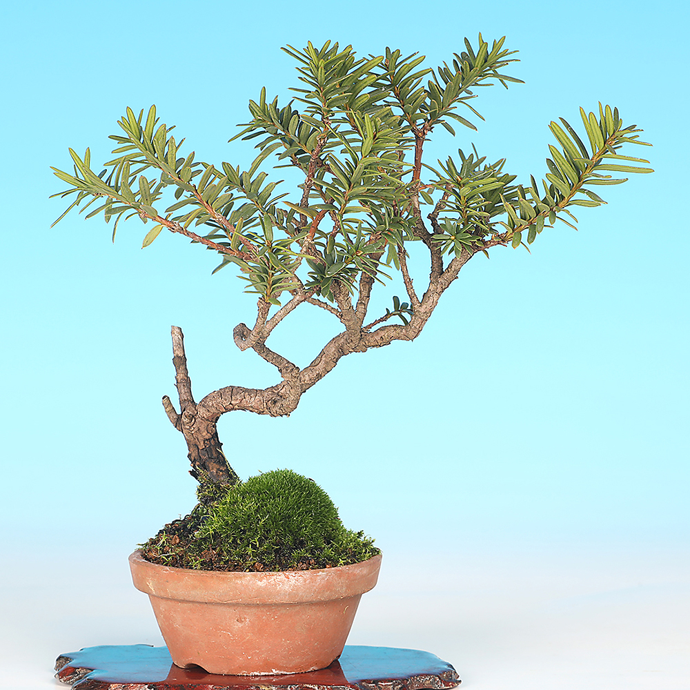 立ち上がり近くから大きな模様が入り、楽しみ多い一位の素材。一位の小品・ミニ盆栽は少なく、貴重な素材と言えます。幹模様は素材ごとにバラツキがあるので、どのように個性を活かして仕立てるかも腕の見せ所です。一位らしい個性溢れる樹姿に仕上げて下さい。