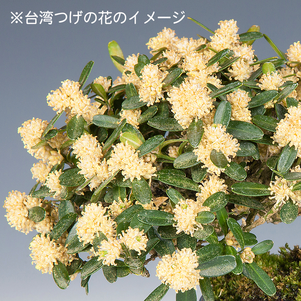 台湾原産で標準和名はタイワンアサマツゲ。沖縄地方では庭木とて親しまれる常緑小高木です。細長い葉が対になって茂り、青々とした艶のある葉が特徴です。また比較的短期間で幹肌が縦割れし古く見えるため、盆栽樹種として注目を浴びている樹種です。