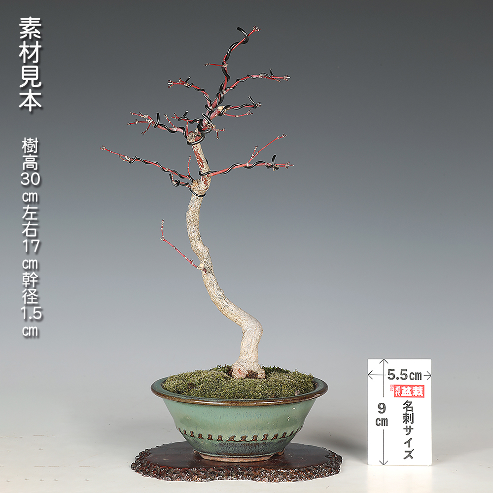 文人風の樹形で自然な幹の優しい模様が魅力の素材。幹には時代も見せています。芽出しの美しさ、夏の清涼感、秋の紅葉と四季を楽しんで下さい。