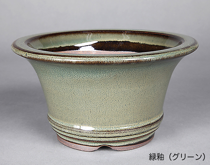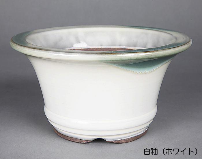 小石原焼最大級の丸鉢。貴風〜中品までをカバーします。山野草も寄せ植えなど豪華な植え付けが可能。緑釉・海鼠釉・白釉、各1点ずつの3点セットです。