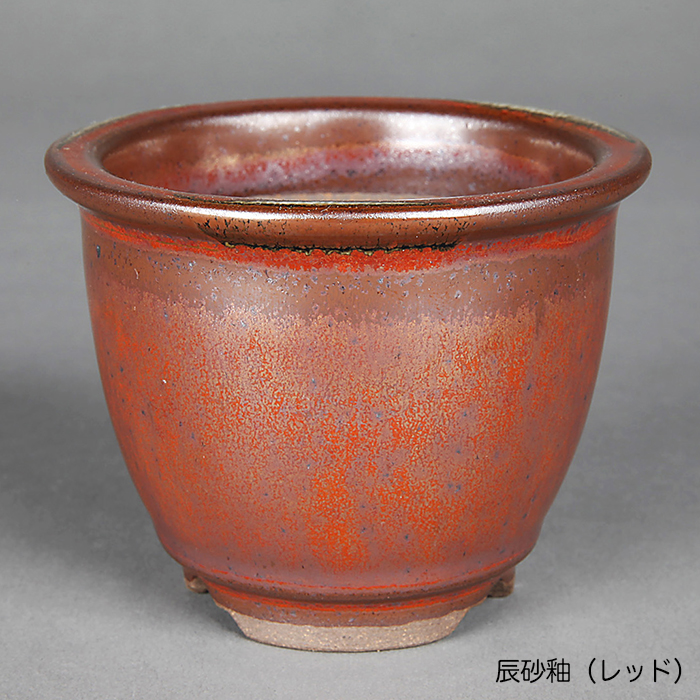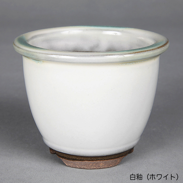 深さのある外縁丸鉢。やや椀型になった柔らかな型が魅力です。ビニールポットから簡単に植え替えられる便利な丸鉢。緑釉・白釉・海鼠釉・辰砂釉、各1点ずつの4点セットです。