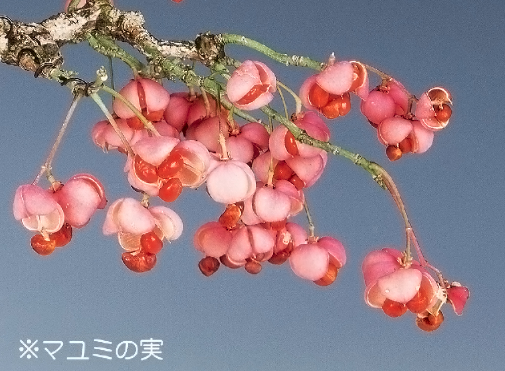 ニシキギ科の落葉高木。まゆみらなではの可憐な実は盆栽愛好家のみならずとも目を奪われます。幹も古色が乗れば見事な時代感をまといます。老樹の風情に実の風情、趣深い実物の人気樹種です。