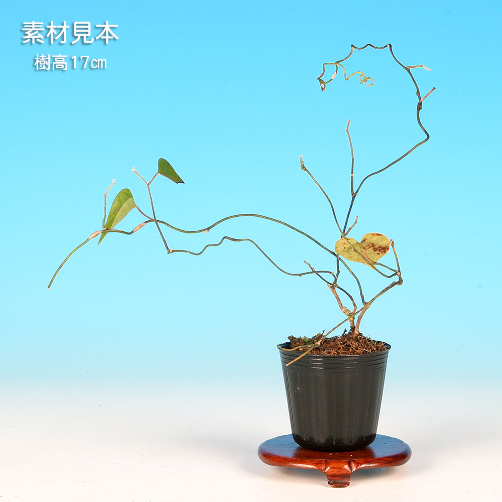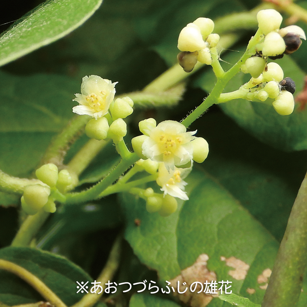 青つづらふじの交配用雄木素材です。青つづらふじは雌雄異株の樹種のため、実姿を楽しむには雄木との交配が必要不可欠。青つづらふじの雄花は黄色いオシベがあり、雌花の中心に緑のメシベがあり、それで見分けます。雄木を雌木の近くに置いて自然交配、あるいは人口交配で受粉させます。もちろん、盆栽として一から樹づくり、花姿も楽しむこともできます。