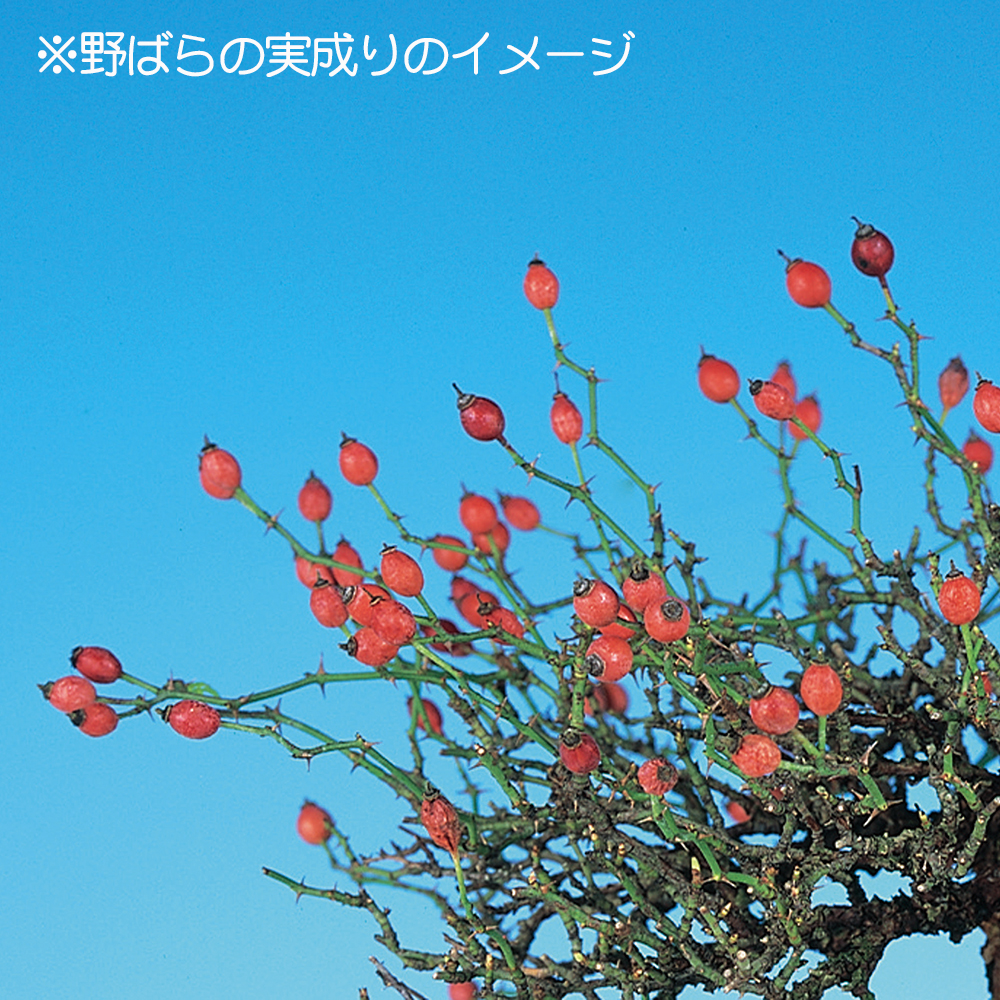 バラは古くから世界中で愛好されている園芸樹種の代表格。その原種の野ばらも多彩な花芸から花を楽しむ樹種と思われていますが、秋に色づく小さな実姿も味わい深く、花だけではない魅力を持った樹種です。
