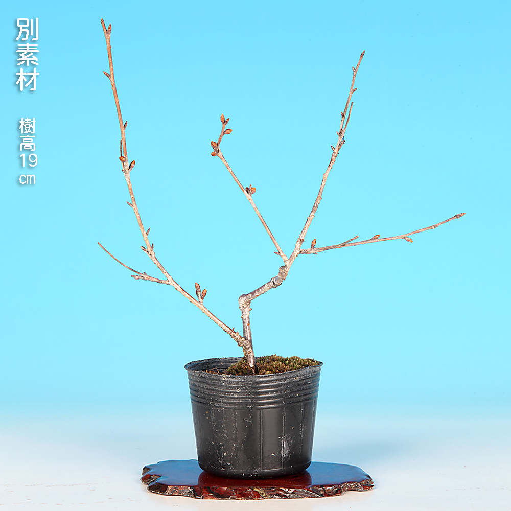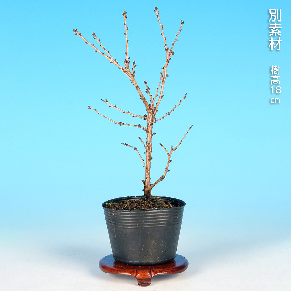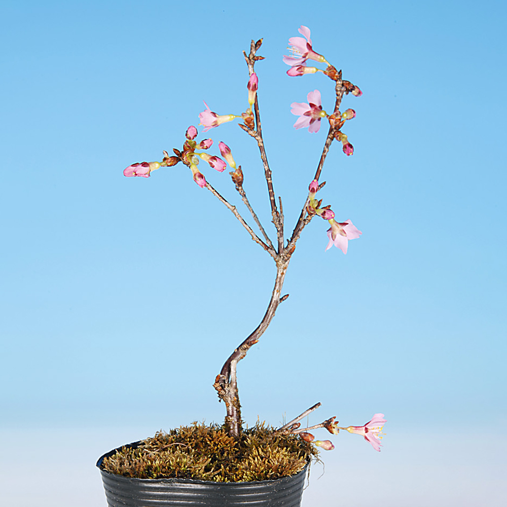 日本の春を代表する花木・桜。盆栽としても春の展示会には欠かせない存在です。「カンヒザクラ」と「マメザクラ(富士桜)」との交配品種で、早咲き、愛らしい濃い紫紅色の小輪で花を下向きに付けるのが特徴。花も小さいので小品盆栽・ミニ盆栽向きです。卓上で手軽にお花見を楽しんで下さい。お部屋のインテリアやガーデニングなどにもオススメ。