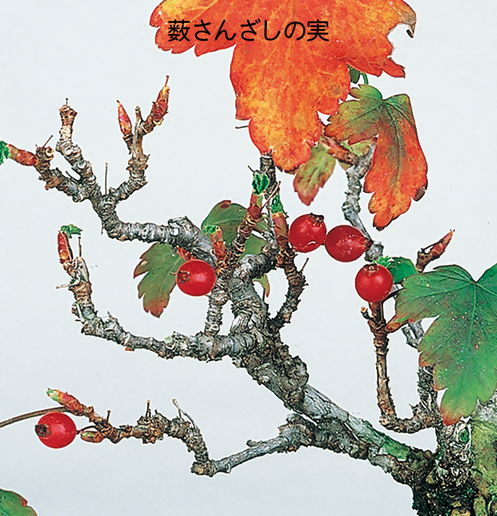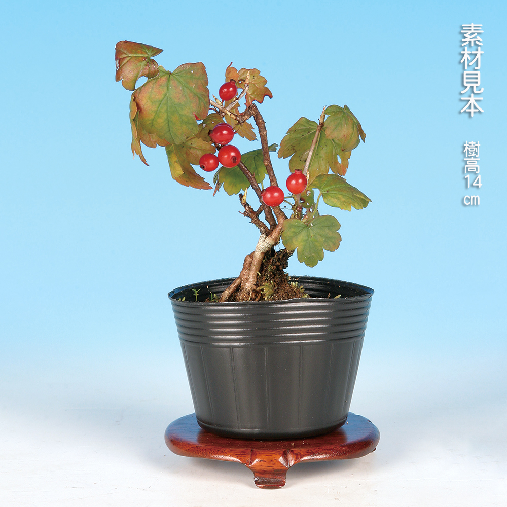 「やぶさんざし」は実が「さんざし」に似ていますが、「さんざし」の仲間ではありません。4~5月に黄緑色の花を咲かせ、秋にさんざしに似た赤い実を着けます。節間が短く作れるので小品盆栽・ミニ盆栽に適した樹種です。