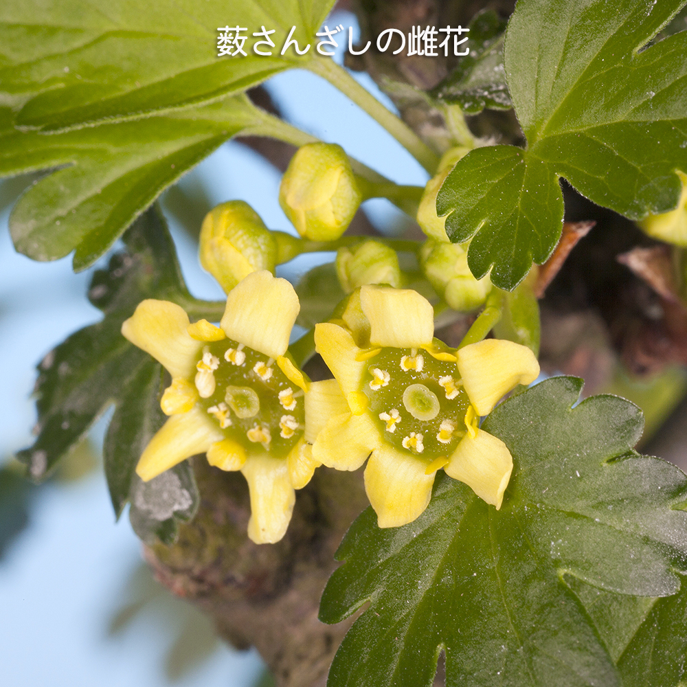 ユキノシタ科スグリ属の落葉低木。本州(中部地方以西)、四国、九州、朝鮮半島、中国で主に分布しています。実が「さんざし」に似ていることから命名されたようですが、「さんざし」の仲間ではありません。4~5月に黄緑色の花を咲かせ、秋にさんざしに似た赤い実を着けます。節間が短くつくれるので小品盆栽で人気を高めています。同じ属の樹種として天皇梅があります。