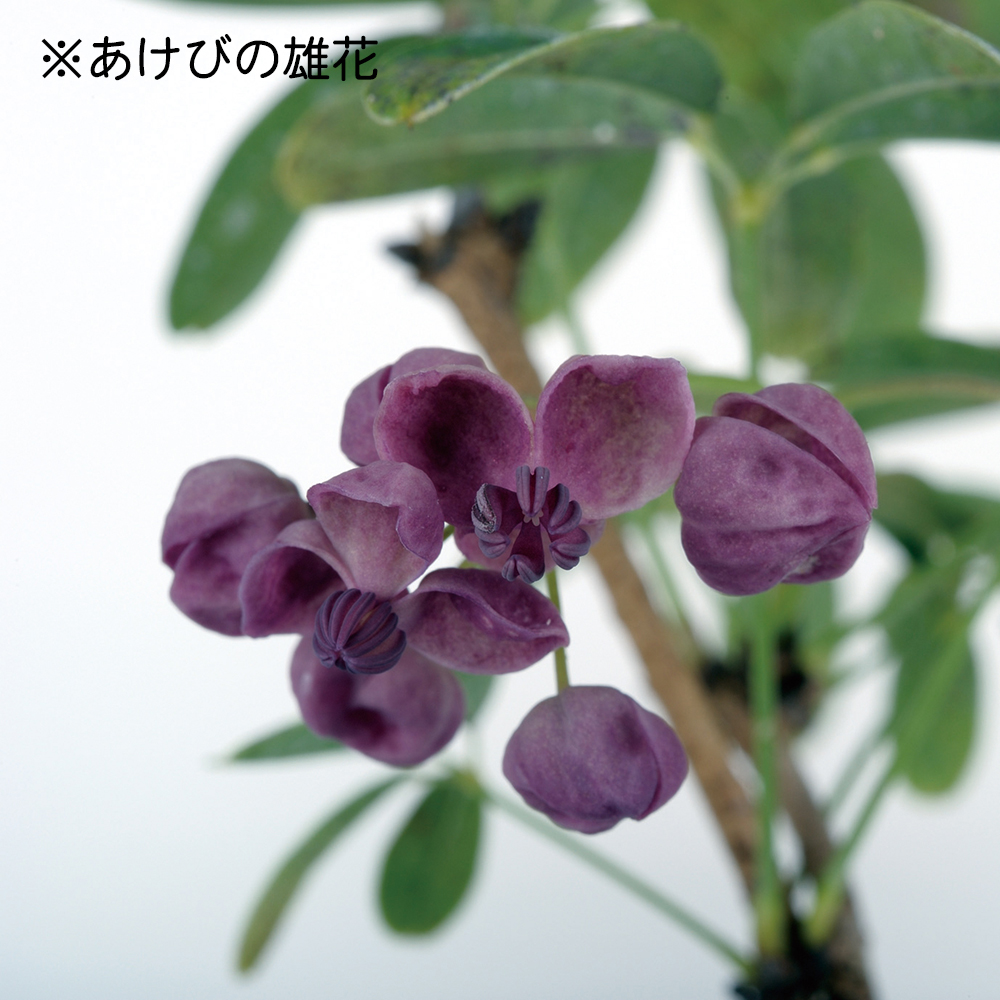 郷愁誘う実姿が味わい深い「あけび」。花・実が付きやすいとされる一才性の素材です。あけびは雄雌異花同株ですが自家不和合性のため、自家受粉では結実しにくい樹種です。他のあけびと人工交配させれば確実に実が止まります。花付きのよい一才性なので交配用としてもオススメです。? 花が咲いたら花を採取して人工交配させましょう。