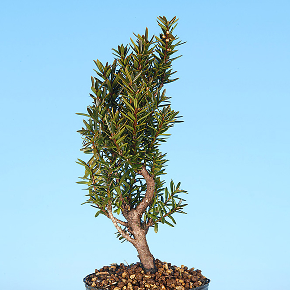 真柏や杜松と同様にジン・シャリ芸が楽しめる樹種の「一位」。その一位の中でも小葉性の八ッ房品種です。普通種に比べて枝打ちが細かく、小品・ミニ盆栽に最適な品種です。樹勢も比較的強く、盆栽初心者の方にもオススメです!