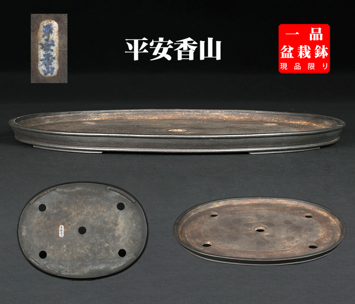 月之輪正泉五騎馬彩訪友図隅切長方鉢
