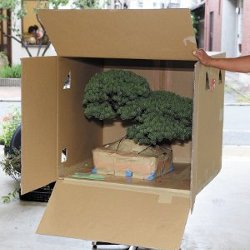 大きいサイズの盆栽でも安心の梱包です。横に倒れたりすることはないので振動で枝が折れることはありません。 万が一のトラブルが生じましても責任をもって対応させて頂きます。