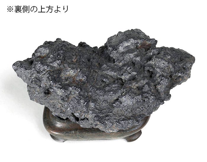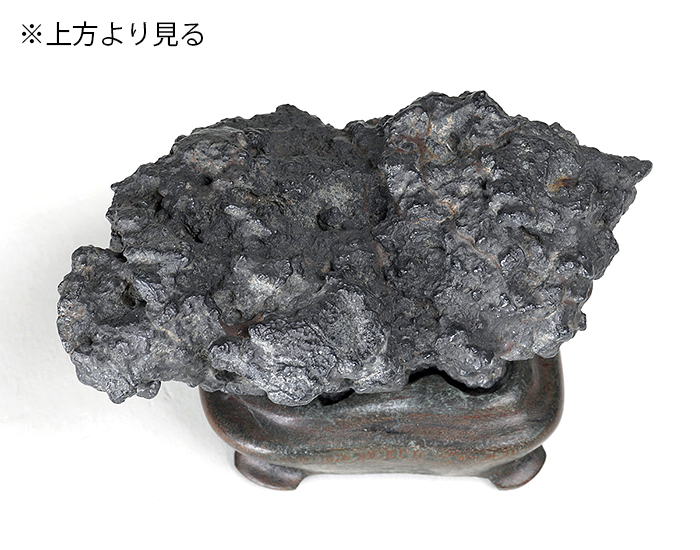 玄海石は北九州市若松区小石海岸西方に広く産する海石の代表格です。玄海石の特徴の一つ窪みのある真黒石で持ち込みの古さが味わい深い逸品です。玄海灘の荒波に研磨された海ずれの石肌が雷雲のごとき迫力を表現し、大自然の厳しさを感じさせる。底は大きく手を入れた痕跡はなく、ウブに近い状態です。