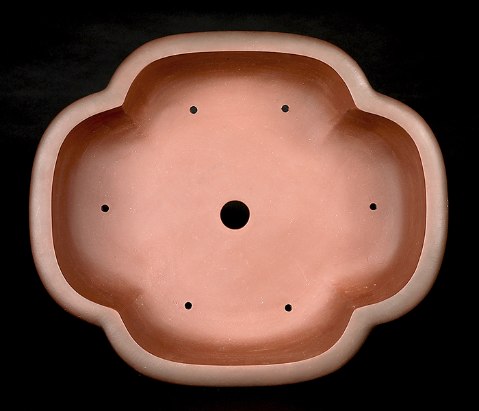 きめ細やかな土目と確かな成形技術で格調高い仕上がりを見せる「張氏製陶」の泥鉢。その技術の高さを見込み、当社が様々な型・サイズを指導。そして使い勝手を考慮して鉢の厚み・鉢穴・針金穴など事細かに指導を行いました。その結果プロも認める現代中国泥鉢最高峰と呼ぶに相応しい仕上がりを実現しています。そして仕上げのロウ引きを排し、焼成前に時代付けを施し、自然な仕上がりを実現した製法は通気性が良く培養面で優れた効果を発揮します。また使い込めば本物の時代も乗りやすく、美観・培養両面で優れたオリジナル盆栽鉢です。