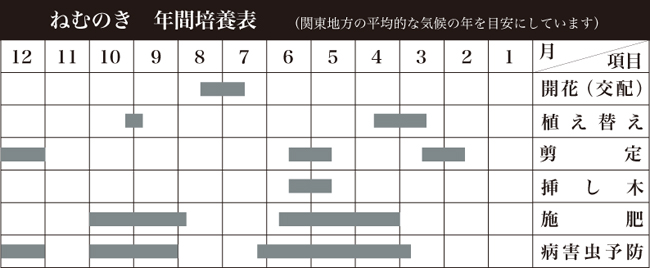 開花期は7~8月頃で短枝の先端に咲きます。若木は枝の徒長が激しいので花芽が分化しにくいですが、新梢を伸ばしては切る剪定を繰り返し、落葉後も徒長枝を追い込んで抑制すると短枝が増えて花芽が着きやすくなります。