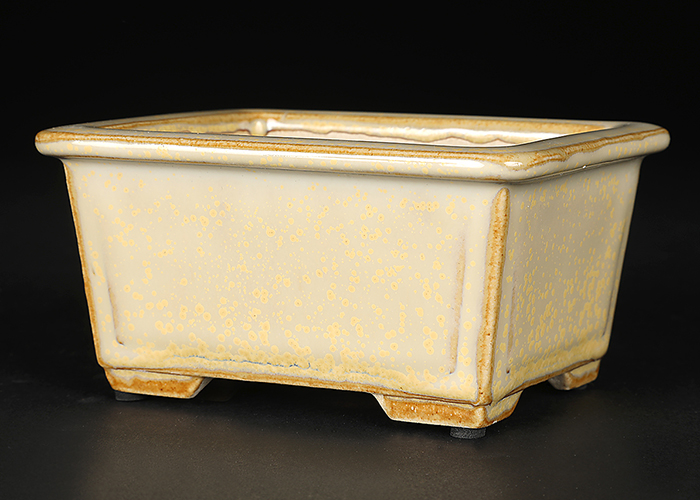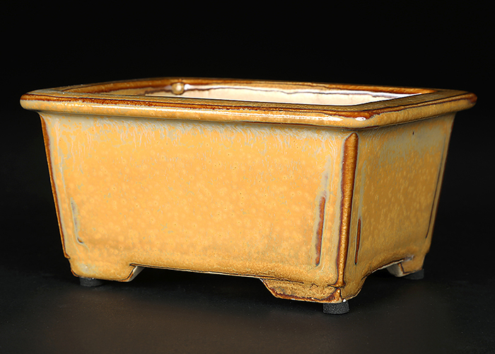 本場である中国広東省・広州の窯元で焼成された石峰雨竹の広東鉢。古渡鉢の再現にこだわり、長らく放置されていた登り窯を再興、当時の胎土と釉薬、製法までをも再現しています。登り窯での焼成が生み出す美しい発色と窯変は量産品でありながら1点ものの味わいを見せています。型は古渡鉢を模範とし、現代にも使えるオリジナルの型を用いています。石峰雨竹シリーズの中でもミニ盆栽〜小品盆栽に使える手頃なサイズのシリーズ。この美しい釉薬に相応しいデザイン性に富んだ型が特徴です。この美しい釉薬に相応しいデザイン性に富んだ型が特徴です。