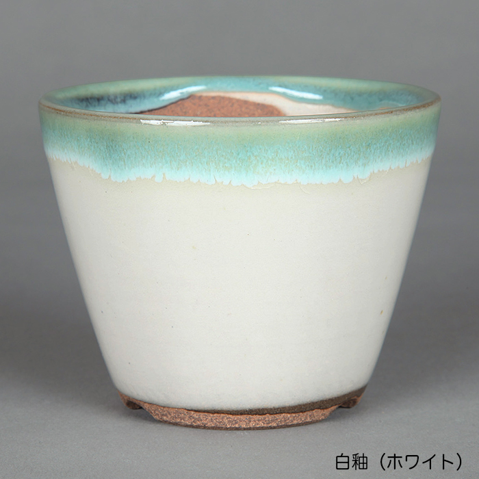 深さがあり使い易いサイズが魅力の丸鉢。小品、ミニ盆栽、山野草と幅広く使えます。ビニールポットからの植え替えに最適なサイズ感です。釉薬は緑釉・海鼠釉・辰砂釉・白釉の4色がございます。