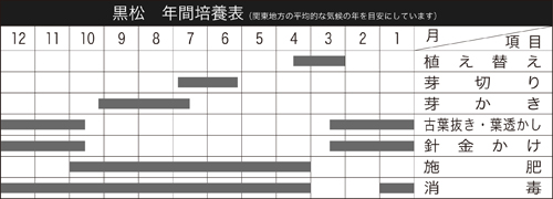 錦松は、黒松の突然変異種です。香川県高松市で発見され、江戸時代から盆栽として栽培されてきました。最も特徴的なのは、厚く亀甲状に裂ける樹皮です。まるで古木のような風格があり、盆栽で人気があります。葉はクロマツと比べて短く、濃緑色ですが、成長はクロマツよりも遅く、剪定に強くよく枝分かれします。