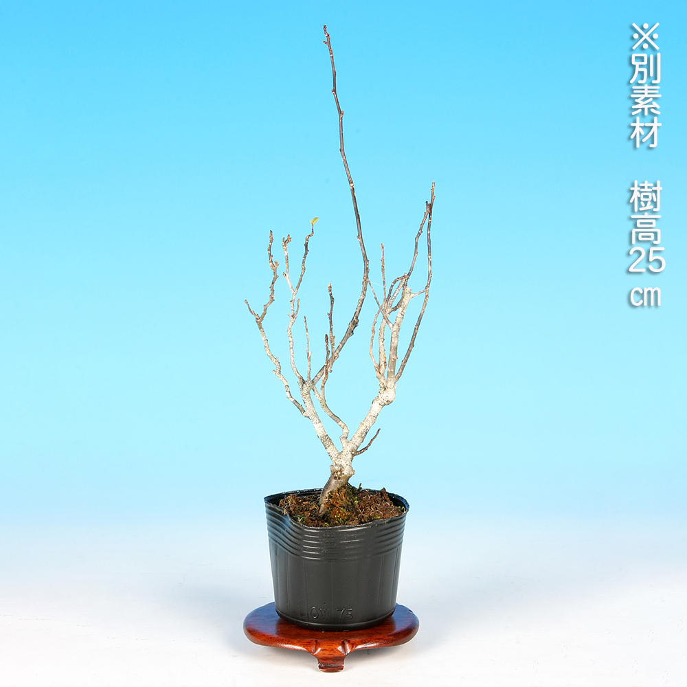 風鈴梅もどきの交配用の雄木素材です。風鈴梅もどきは雌雄異株の樹種のため、実姿を楽しむには雄木との交配が必要不可欠。雄木を雌木の近くに置いて自然交配、あるいは人口交配で受粉させます。もちろん、盆栽として一から樹づくり、花姿も楽しむこともできます。