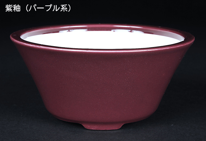 色鮮やかな発色と高品質な仕上がりが魅力の静和富造。某商社が輸出用に日本国内で作らせたものですが訳あって納品に至らず、小社がそれを一括購入。それにより高品質な日本鉢ながらリーズナブルな価格の静和富造ブランドが誕生しました。原産地は定かではありませんが、胎土を見る限り瀬戸か清水(京焼)と思われ、釉薬の仕上がり、特に紫釉や珊瑚釉の特徴的な色合いから、京焼ではないかと予想されます。実際に盆栽業界では京焼として流通しています。  高温でしっかり焼成された磁器のボディは適度な薄さで仕上げてあり、使い勝手の良さと耐久性を見事に両立しています。その品質の高さはプロからも高い評価を得ています。釉薬・型・大きさとバリエーションの豊富さも大きな魅力。高品質な日本鉢ながらリーズナブル、色鮮やかな静和富造であなたの樹に彩りを与えて下さい。