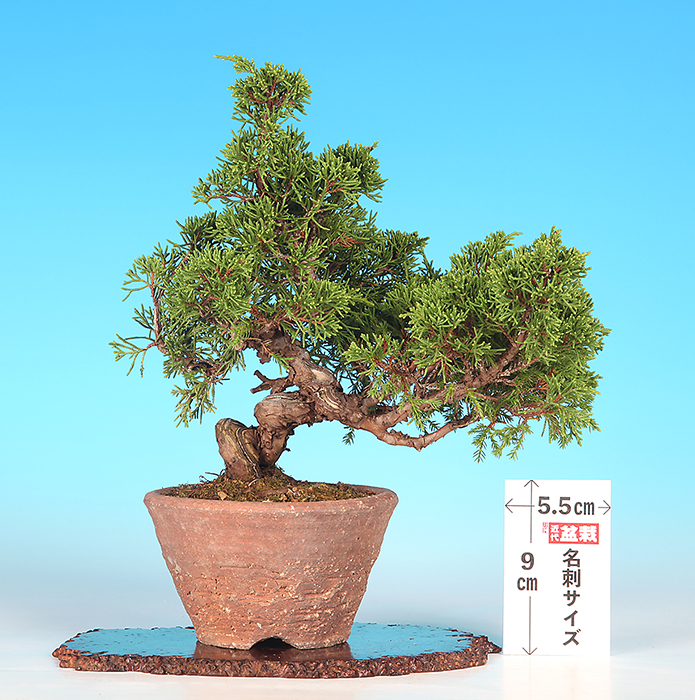 幹模様やシャリと水吸いの変化など、優秀な幹骨を備えた真柏の逸品素材。本格的な真柏の小品盆栽に仕立てるのに最適なサイズです。