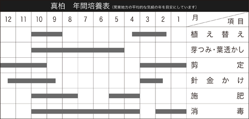 日当たりと風通しのよい棚上で管理します。冬場も棚上で問題ありませんが、霜に当てると葉がくすんだ色になります。室内に入れて日が経てば元に戻るので、展示会出品などを控えた樹は軒下などで保護しましょう。秋に強い作業をした樹はムロに取り込んだ方が得策です。